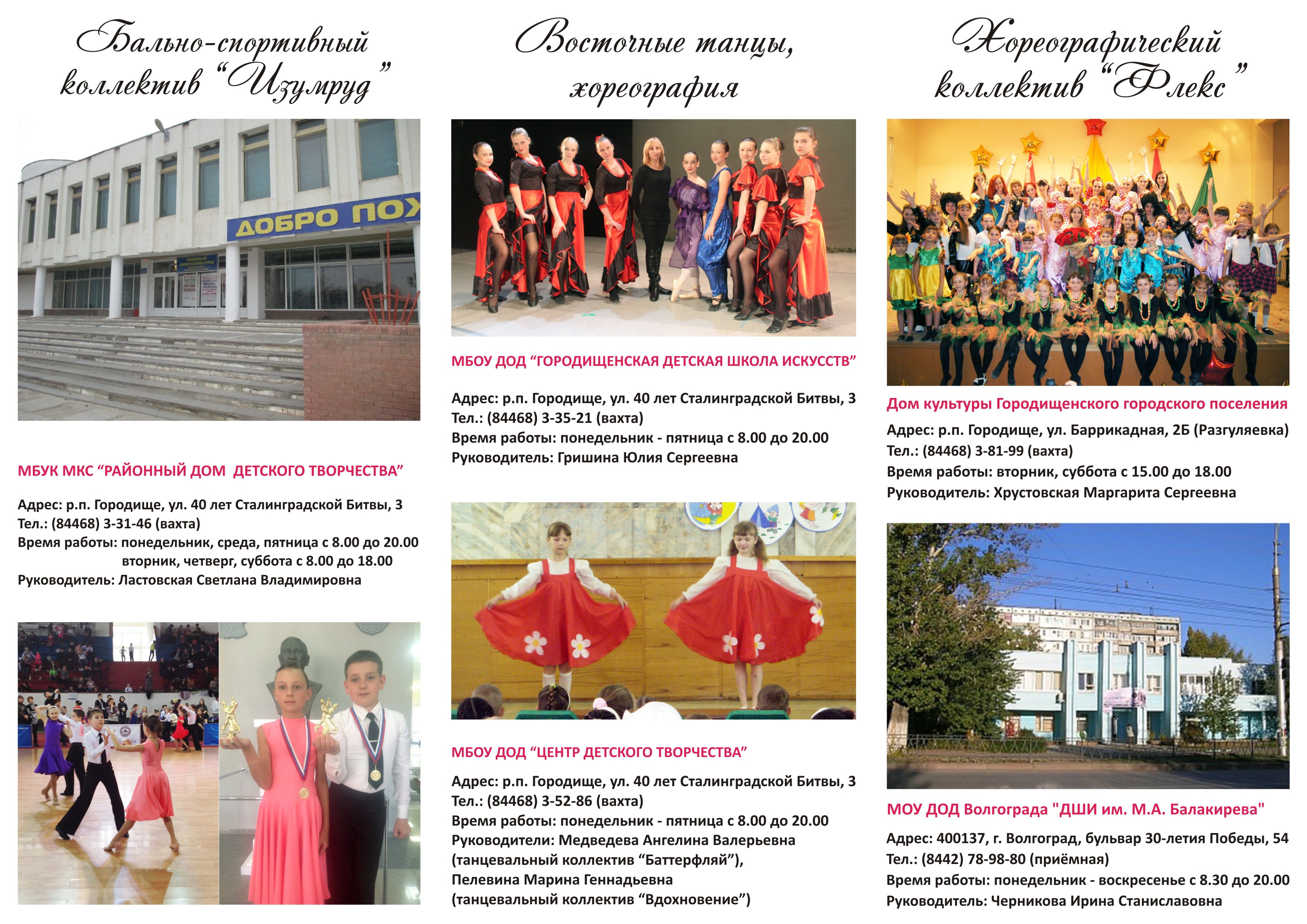 Продукт к проекту выполнен в виде буклета, в нем собрана информация по кружкам и секциям в р.п. Городище и ближних районах города Волгограда, в которых можно научиться танцевать